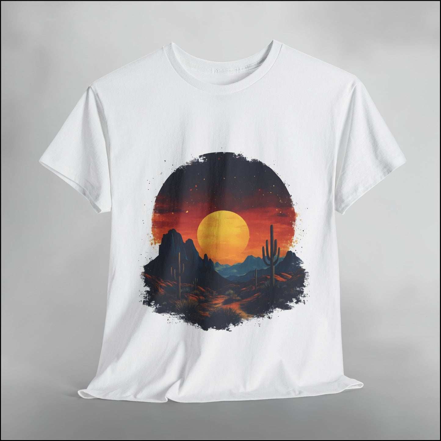 The Sunset Serenade Tee is made from heavyweight 100% US cotton for a premium feel and all-season comfort. The classic cut and ribbed neckline give it structure, while the soft texture makes it a favorite from the first wear.