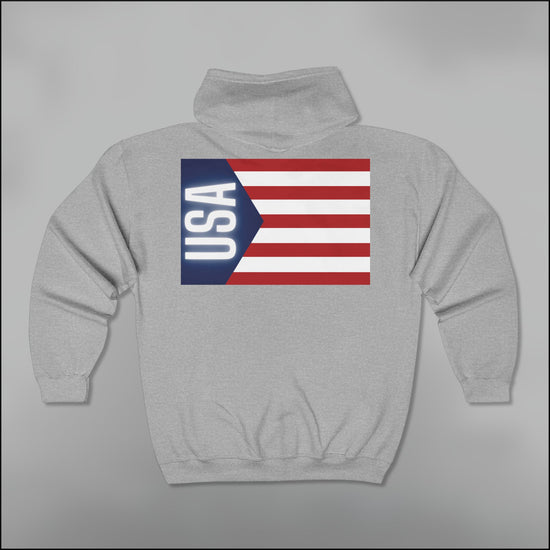 Each Full Zip Hooded Sweatshirt is printed and packed in the USA using high-quality inks and process control.